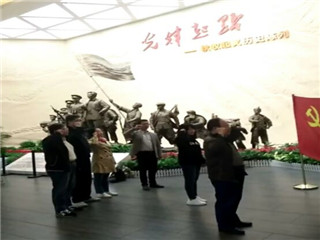 黨支部書記龔德鑫同志帶領全體黨員面向黨旗、莊嚴的重溫了入黨誓詞,旨在讓黨員將黨員意識、奉獻精神銘刻在心。在參觀秋收起義紀念館過程中,大家認真聆聽著講解員的解說,仔細觀看了展館內的圖片、實物、影視、聲像和模型,通過一件件史實,一個個故事,一張張圖片,重溫了那段光輝的歷史。在場黨員深刻的接受了一次革命傳統思想教育,深深體悟了我黨、我軍在革命之初革命先輩不怕犧牲、敢于斗爭的英勇氣概。